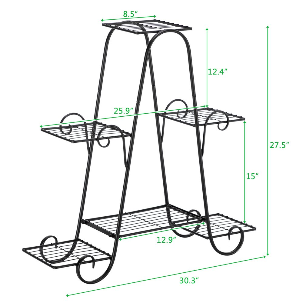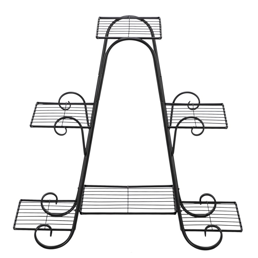 1. Garden iron flower pots holder shelf can holds 7 planters, it decorates your house, garden, balconies, hallway, patios, decks, except a plant stand, it also can be used as book shelf, storage shelf.