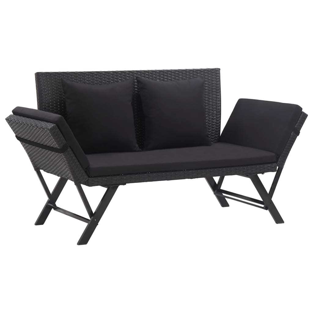 Home > Garden Bench With Cushions 69.3" Black Poly Rattan