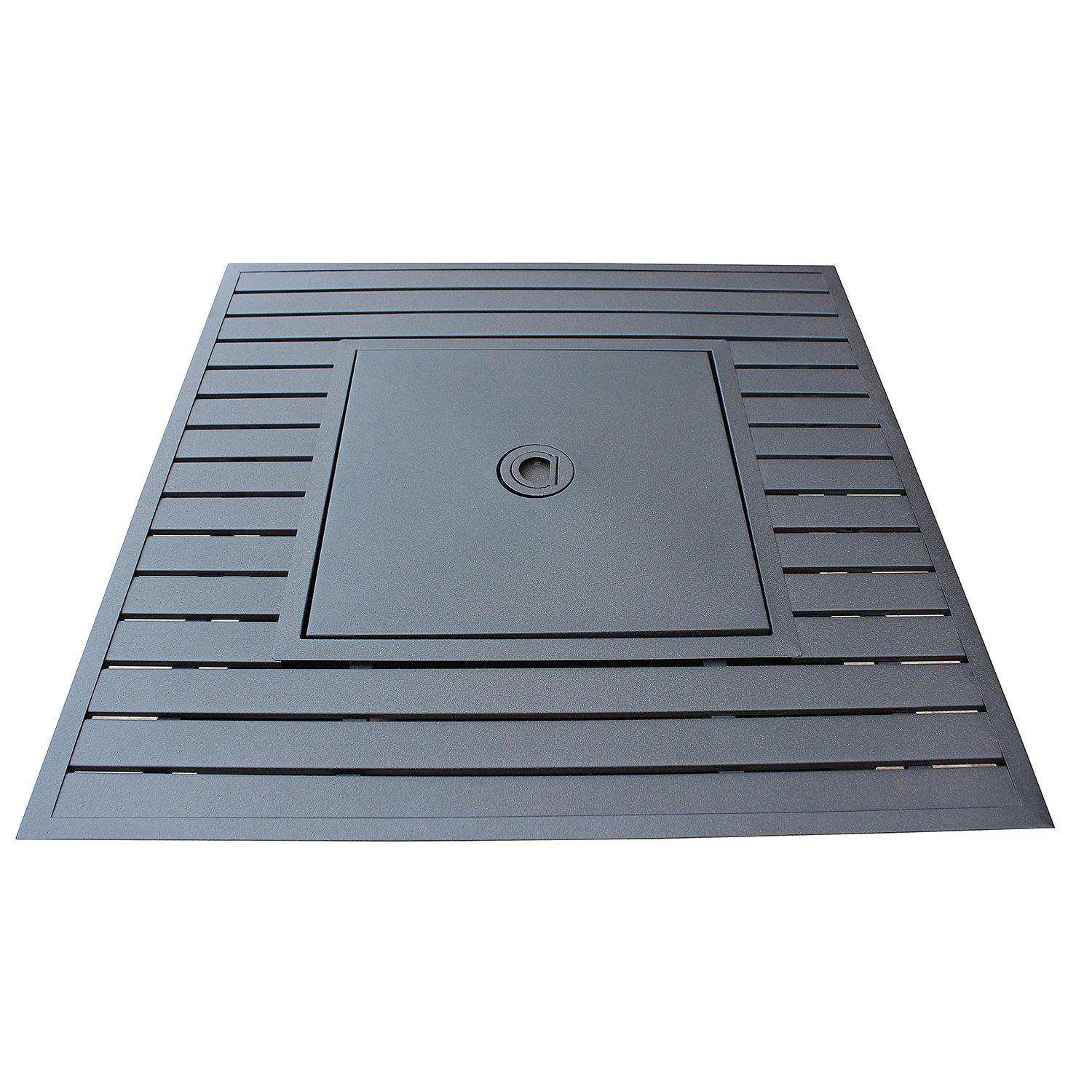 The fire pit table includes: 4.2lbs of lava rocks, and one protective cover.