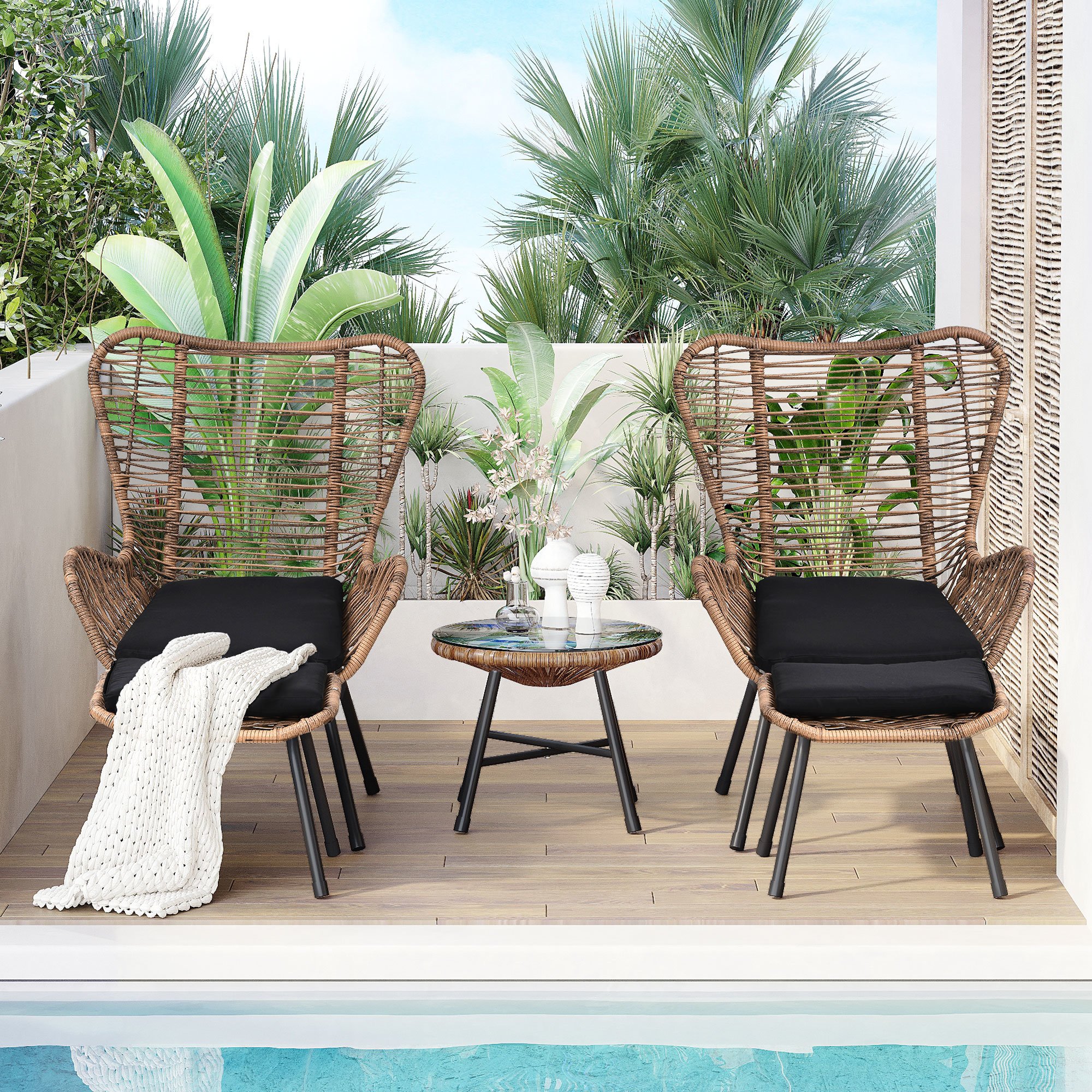 This patio set is made with high-quality all-weather PE rattan material and a powder-coated iron frame for long-lasting outdoor use. The removable cushion covers with zippers can be easily taken off for regular cleaning to keep the furniture looking new and beautiful.