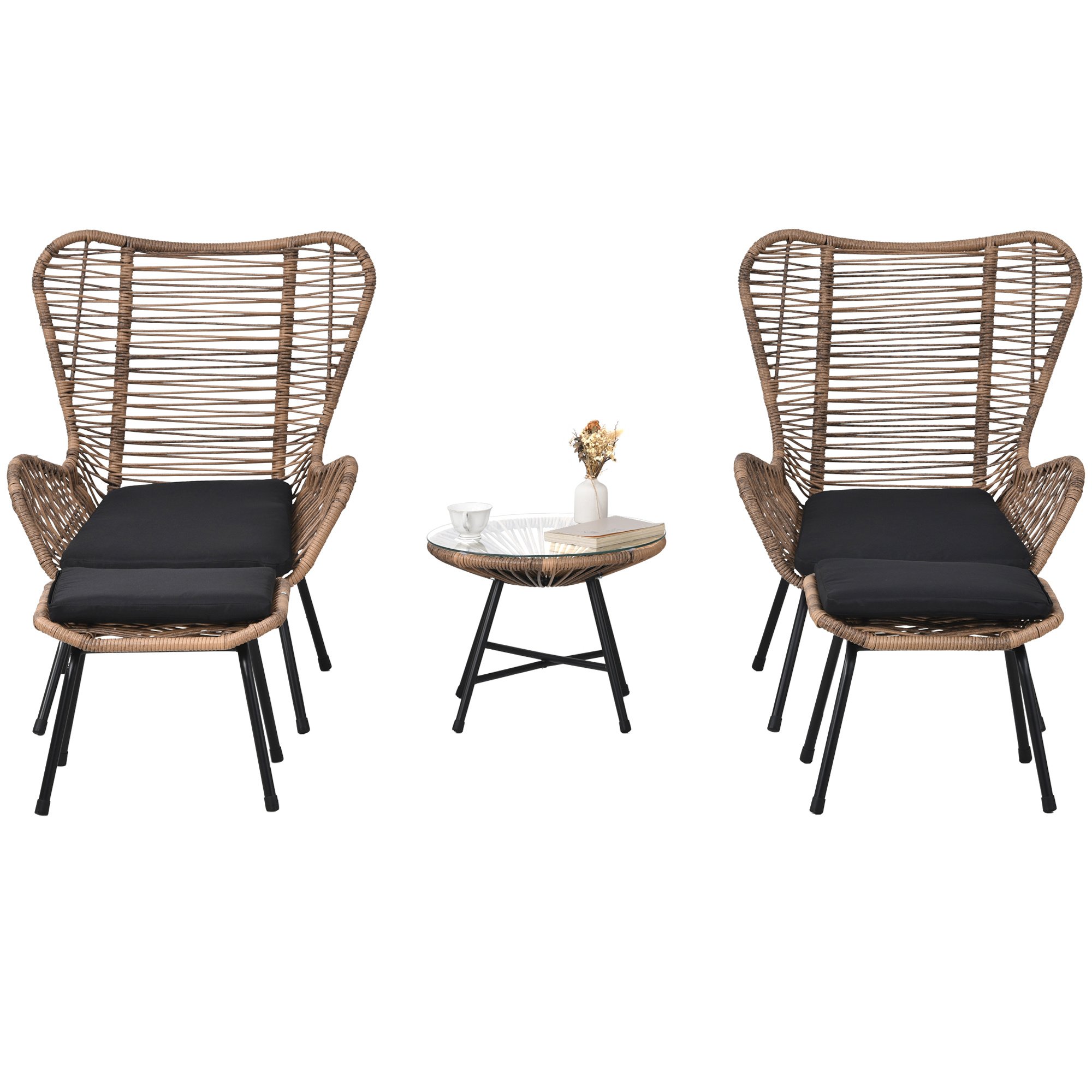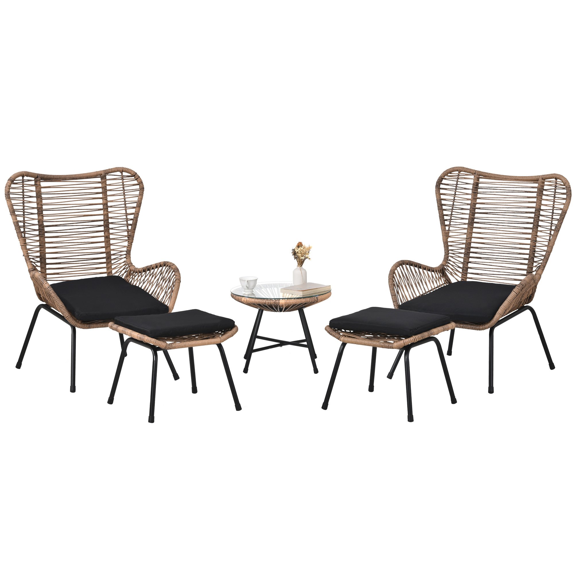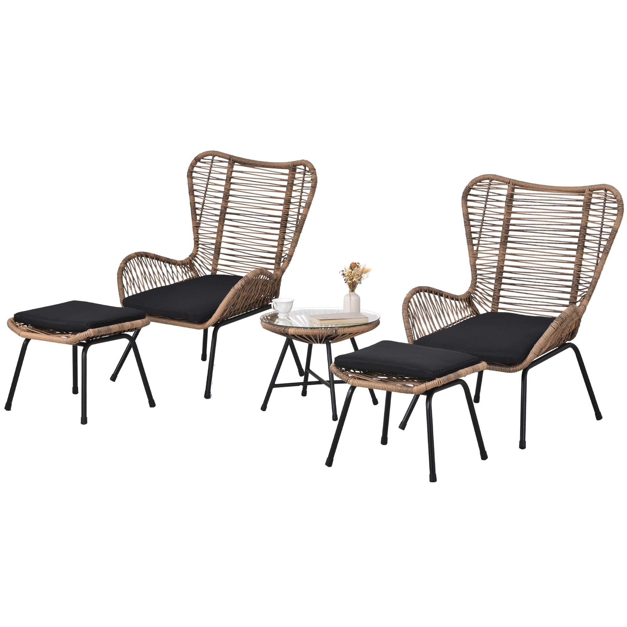 If it happens to own small places or a balcony in your home, this rattan set will be a good choice for you to relax on a cozy summer day. Featured with seat cushions in both chairs and stools, this rattan set allows you to enjoy sunny afternoons outdoors with your friends in either a sitting position or lying on the chair and relaxing your legs.