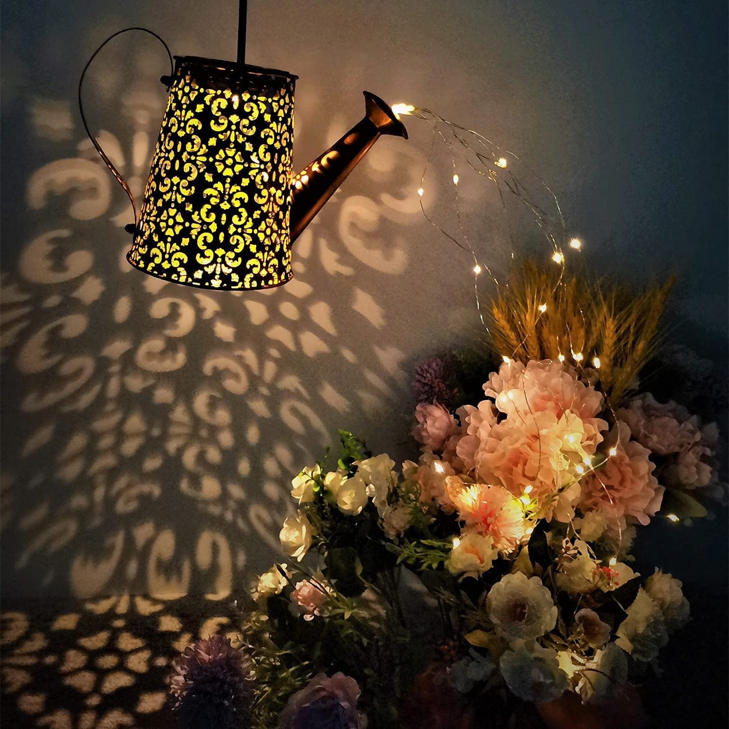3.Wide Application: Our watering can with lights with Installed Light String(with Shepherd Hook) is good for DIY: Watering plants, tree vines, potted, decorations, wedding, party ,dinner table, porch, bedroom, window, balcony, wall, Christmas ,Thanksgiving, birthday, anywhere indoor or outdoor usage of lighting decorations.