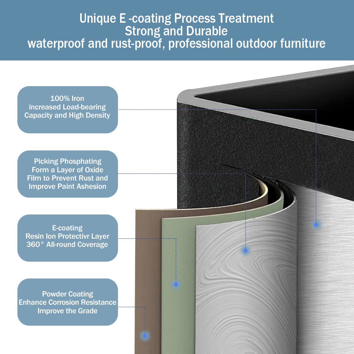 3.Professional as Patio Furniture: The table is designed as patio furniture that won't get curled or deformed after exposed to the sun. All weather resistant, anti-rust powder coated metal frame, no special maintenance required.
