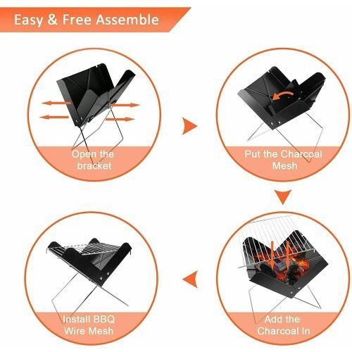 Foldable & Portable: The charcoa grill folding compact but sets up in seconds or less. This barbecue grill is not only foldable, but also small and lightweight, which is particularly easy to carry. It can be folded into ultra-thin, saving space, and it is very suitable for storing this lightweight foldable grill in very small kitchens, trunks, outdoor occasions, or even to put in your bag, as it is easy to carry to anywhere.