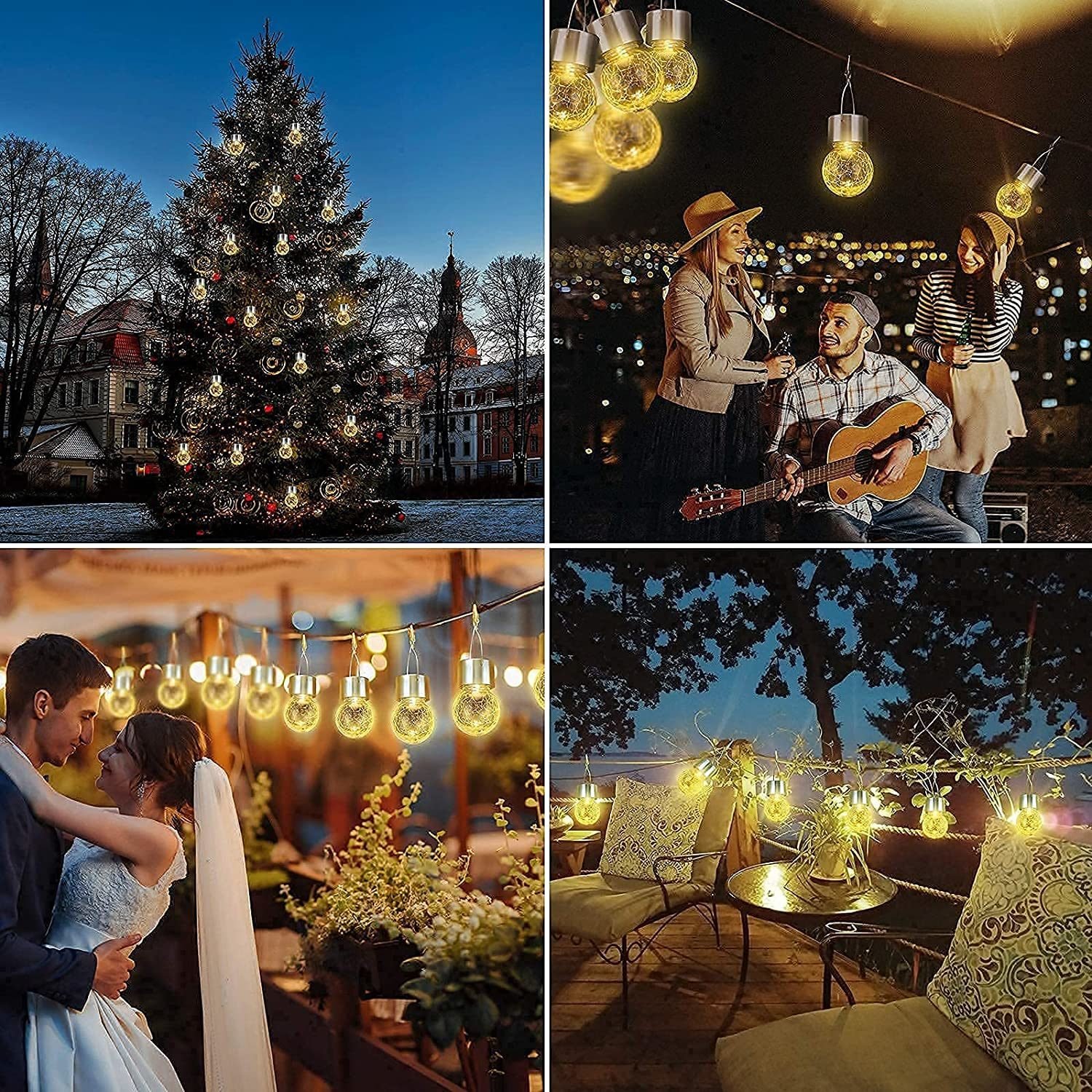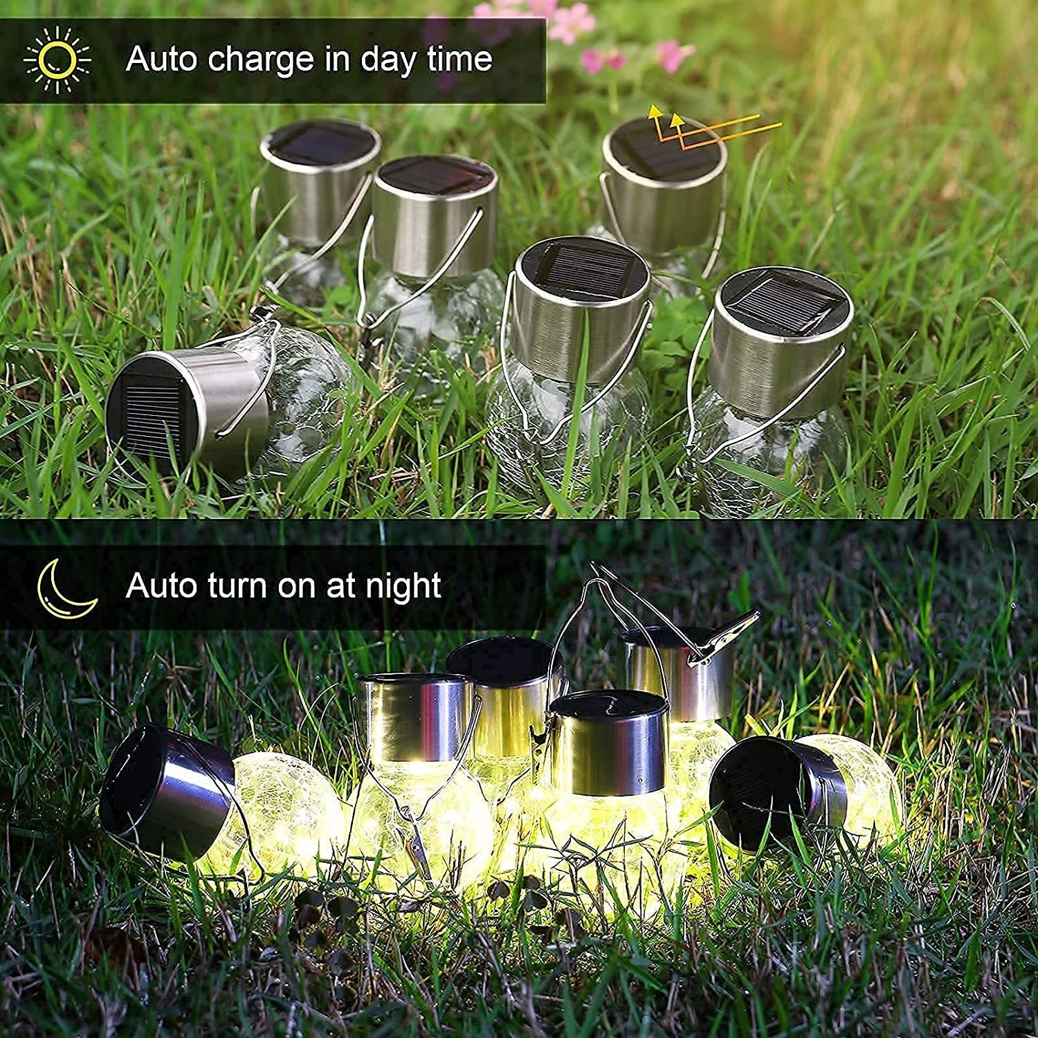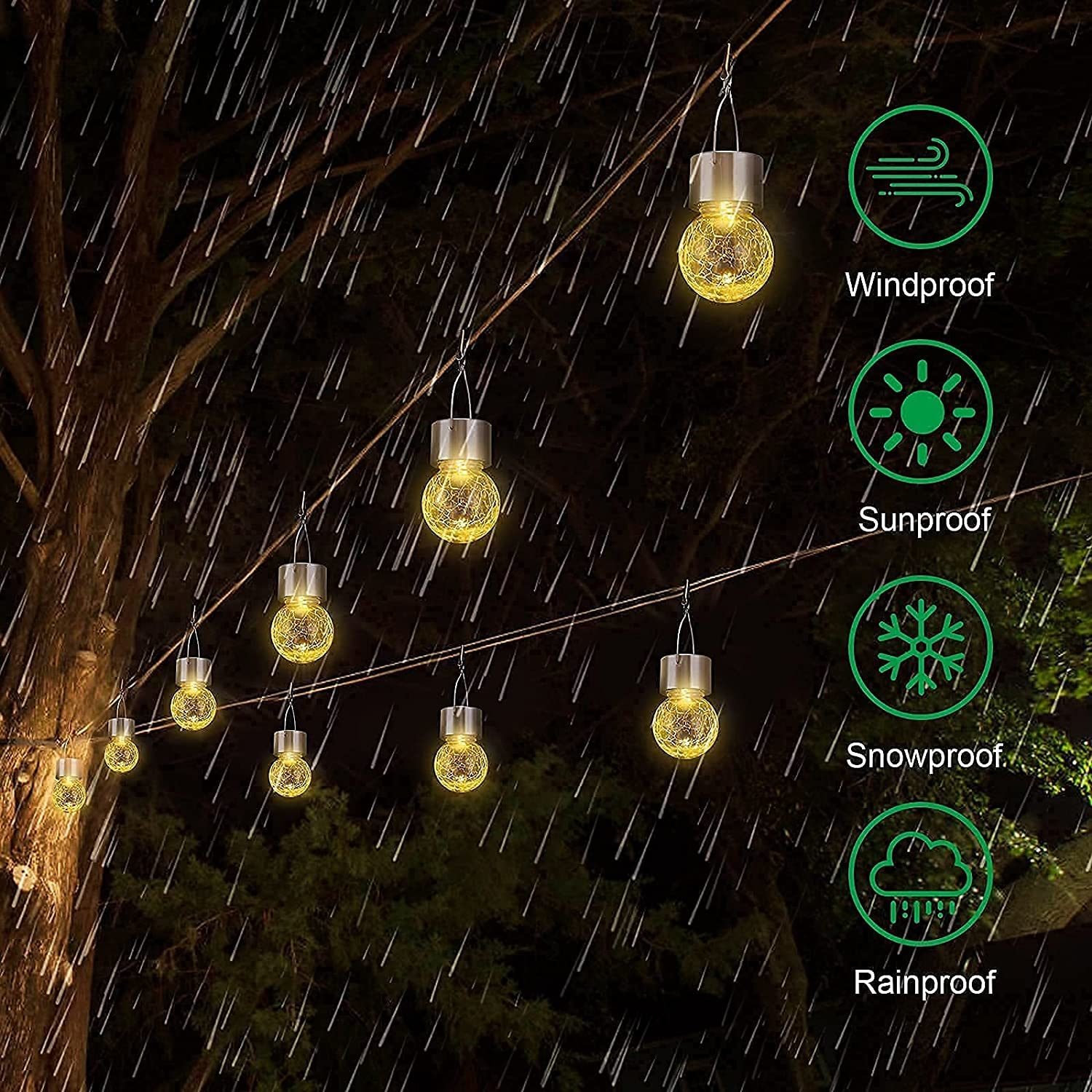 4.Warm White Solar Hanging Lights as Perfect Gifts :Decorative warm hanging solar light emits soft warm, romantic, comfortable lighting atmosphere, is the ideal choice for indoor and outdoor ornament,solar lights outdoor garden decorative