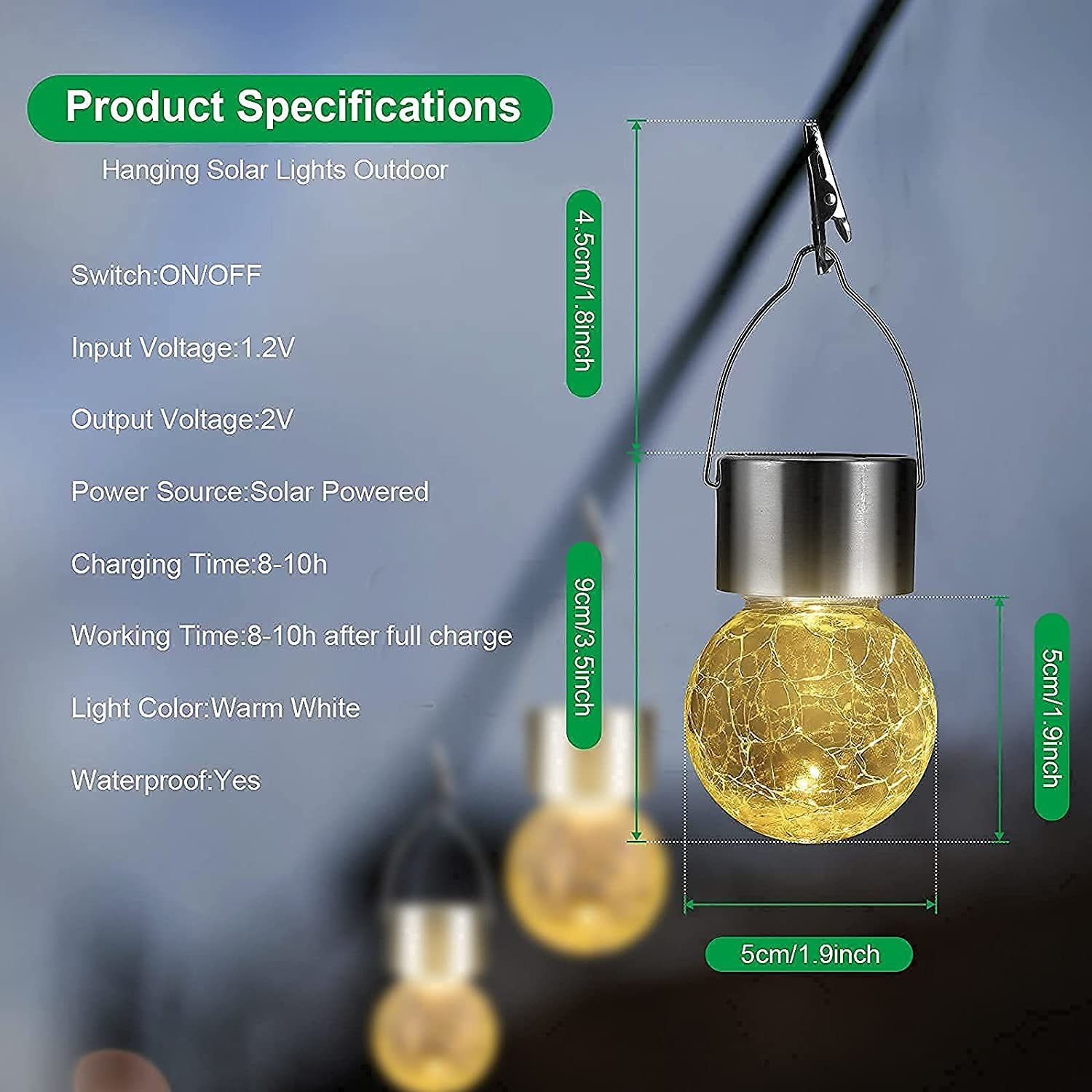 1.Hanging Solar Lights: Hanging solar lights outdoor are upgraded to polysilicon solar panels. On a full charge,it stay lit for up to 8 hours